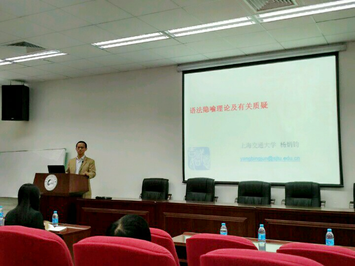 20161214日星期三下午,上海交通大学外国语学院博士生导师杨炳钧教授应邀莅临厦门大学外文学院举办的第九届厦门大学外文学院研究生论坛开幕式,并为华体网师生带来题为“语法隐喻理论及有关质疑”的讲座。讲座在外国语学院南光三教学楼一楼学术报告厅举行,由华体网副院长辛志英教授主持。