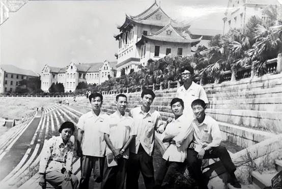 外文学院第一届日语专业研究生与黄国雄教授(1980年于上弦场)