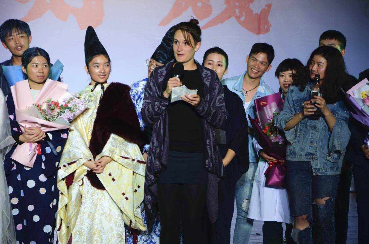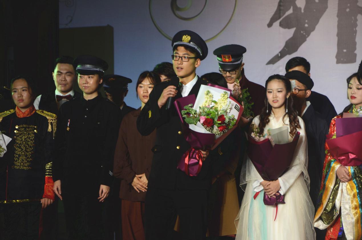 节目表演结束后,剧组人员上台谢幕,同学们为辛勤付出的指导老师们和剧组同学们献上鲜花。去年以演员身份参与“外文好戏”,而今年担任日语剧目学生导演的黄丽蓉同学坦言:“两次不同的体验让我更加坚信——一部好的戏剧演出离不开所有人的努力。”俄语剧目学生导演周寰同学去年也曾参与演出,他表示:“每一届“外文好戏”的水准都在不断提升。”德语剧目的导演、外籍教师Janina Becker表达了对到场观众的感谢和对全体剧组同学的认可,赞扬了同学们扎实的言语功底及精湛娴熟的表演。