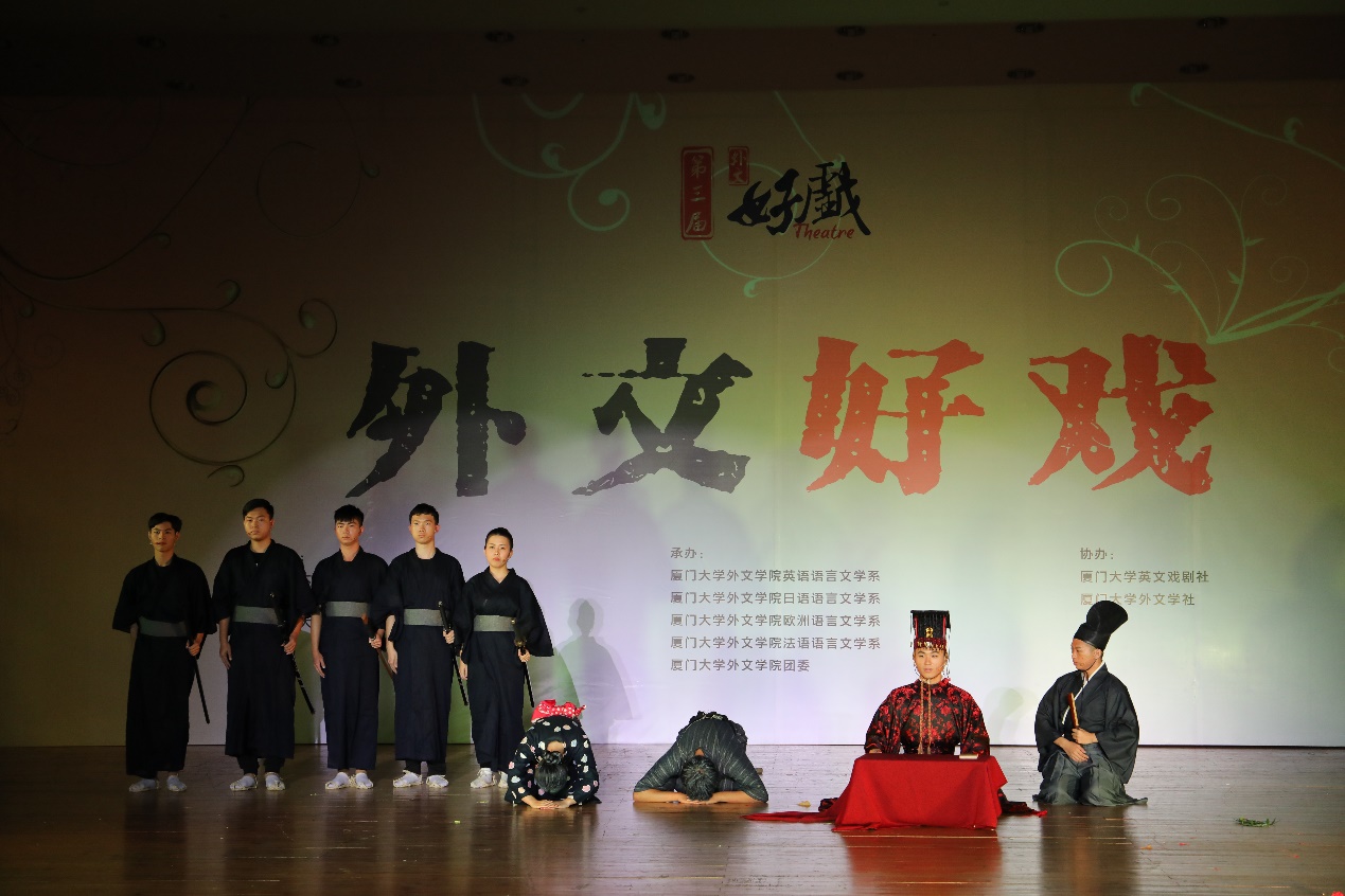 12月8日晚,厦门大学第三届“外文好戏”收官之作——由日语、俄语、德语联袂演绎的“三国演艺”于厦门大学科学艺术中心音乐厅上演。本场演出依次演绎了日语剧目《辉夜姬》、俄语剧目《外套》、德语剧目《老妇还乡》,为广大师生呈现了一场高品质的视听盛宴。南京大学法语系教授、外文学院讲座教授刘成富,外文学院党委书记陈志伟,副院长徐琪,欧洲语言文学系主任顾鸿飞、副主任方厚升等嘉宾领导和老师莅临现场观看演出。本场演出由2016级英语专业本科生刘信和2018级日语专业本科生王嘉仪主持。