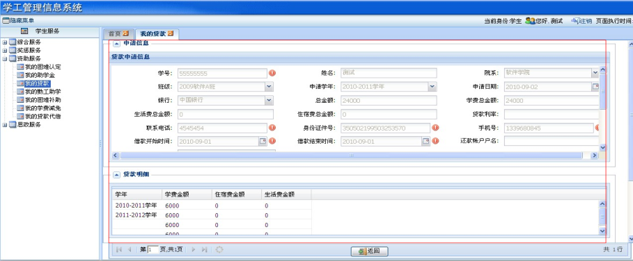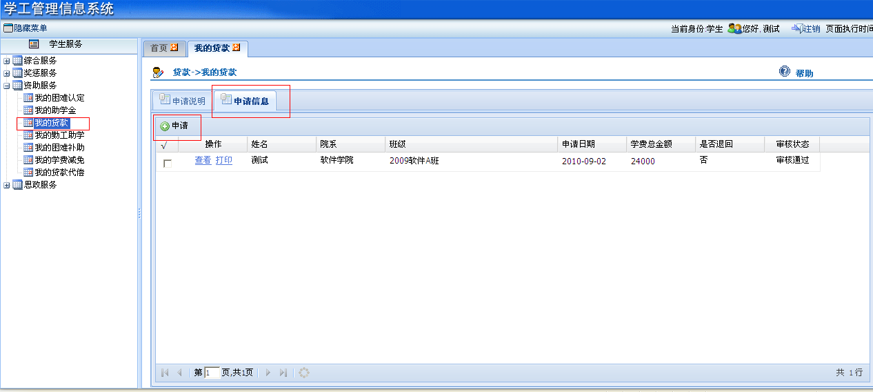 ①学生登录学工管理信息系统“资助服务”—“我的贷款”,可以看到申请说明信息。申请页面如下: