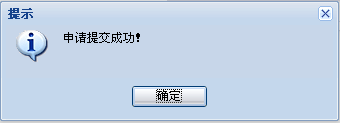 ②填写申请理由等必填信息后点击提交或保存。提交成功后提示: