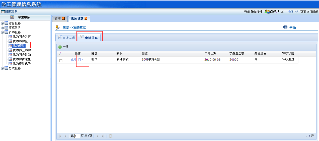 ③贷款申请通过后,学生上网打印申请表