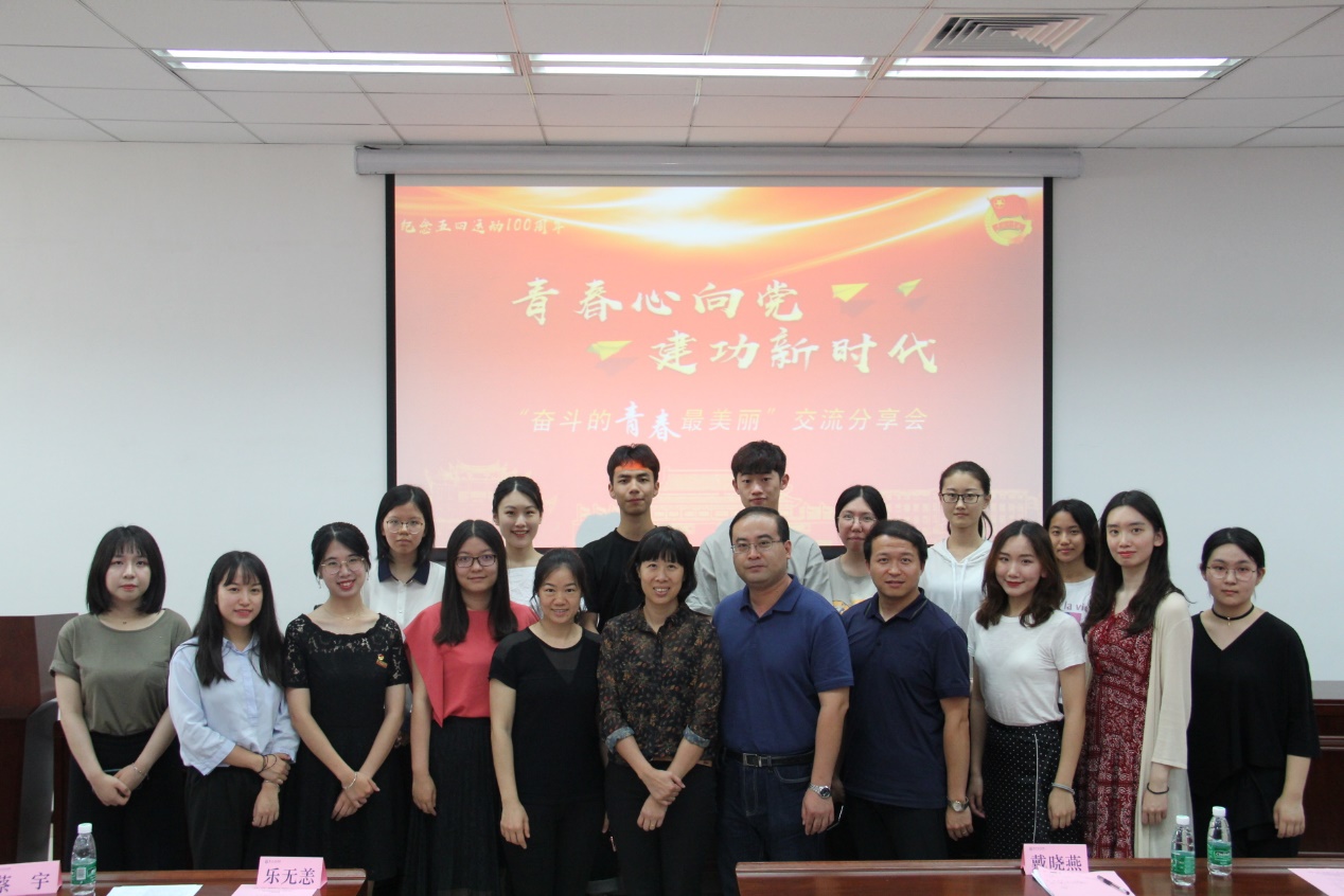 为进一步学习贯彻习近平总书记关于青年的系列重要讲话精神,引领新时代中国青年将个人奋斗融入国家和民族的伟大事业中,助力“百年厦大”建设,5月31日,外文学院举办“青春心向党·建功新时代”纪念五四运动100周年主题系列活动之“奋斗的青春最美丽”交流分享会。外文学院党委副书记沈丽秀,团委书记、研究生辅导员乐无恙,团委副书记、2016级本科生辅导员戴晓燕,2017级本科生辅导员蔡宇,2018级本科生辅导员杨盛澜及本研各年级青年代表参加了本次分享会,共同聆听青春故事,感受青年力量。