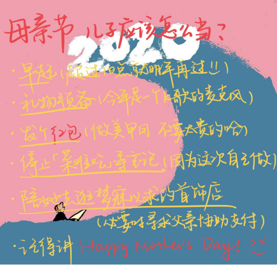 当然最重要的还有一句“妈妈,母亲节快乐哦”。虽然每个人表达爱的方式不同,也许会言语笨拙,手忙脚乱,词不达意,但是妈妈一定会看出这背后的爱的深意!