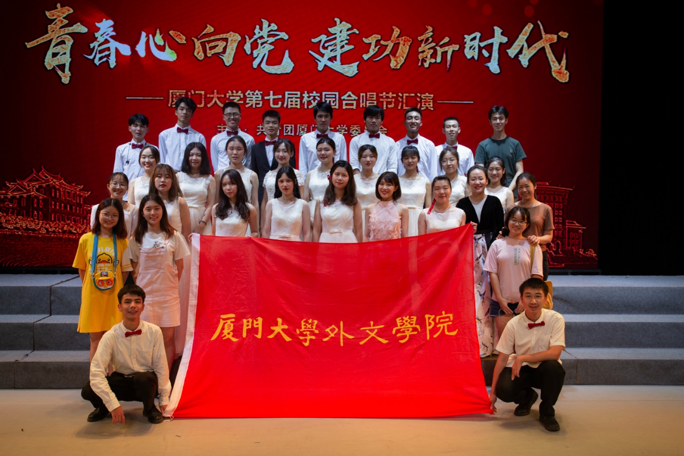 5月8日至5月19日,为庆祝中华人民共和国成立70周年、纪念五四运动100周年,引领广大青年弘扬以爱国主义为核心的伟大民族精神,坚定“四个自信”,营造和谐、向上的校园文化氛围,“青春心向党·建功新时代”厦门大学第七届校园合唱节在厦门大学思明校区举行。来自26个学院合唱团的近千名学生参与了此次合唱节,外文学院合唱团以悠扬的歌声和极富感染力的演绎,充分展现了外文学子昂扬的精神风貌,在歌声中弘扬五四精神,唱响青春中国梦。