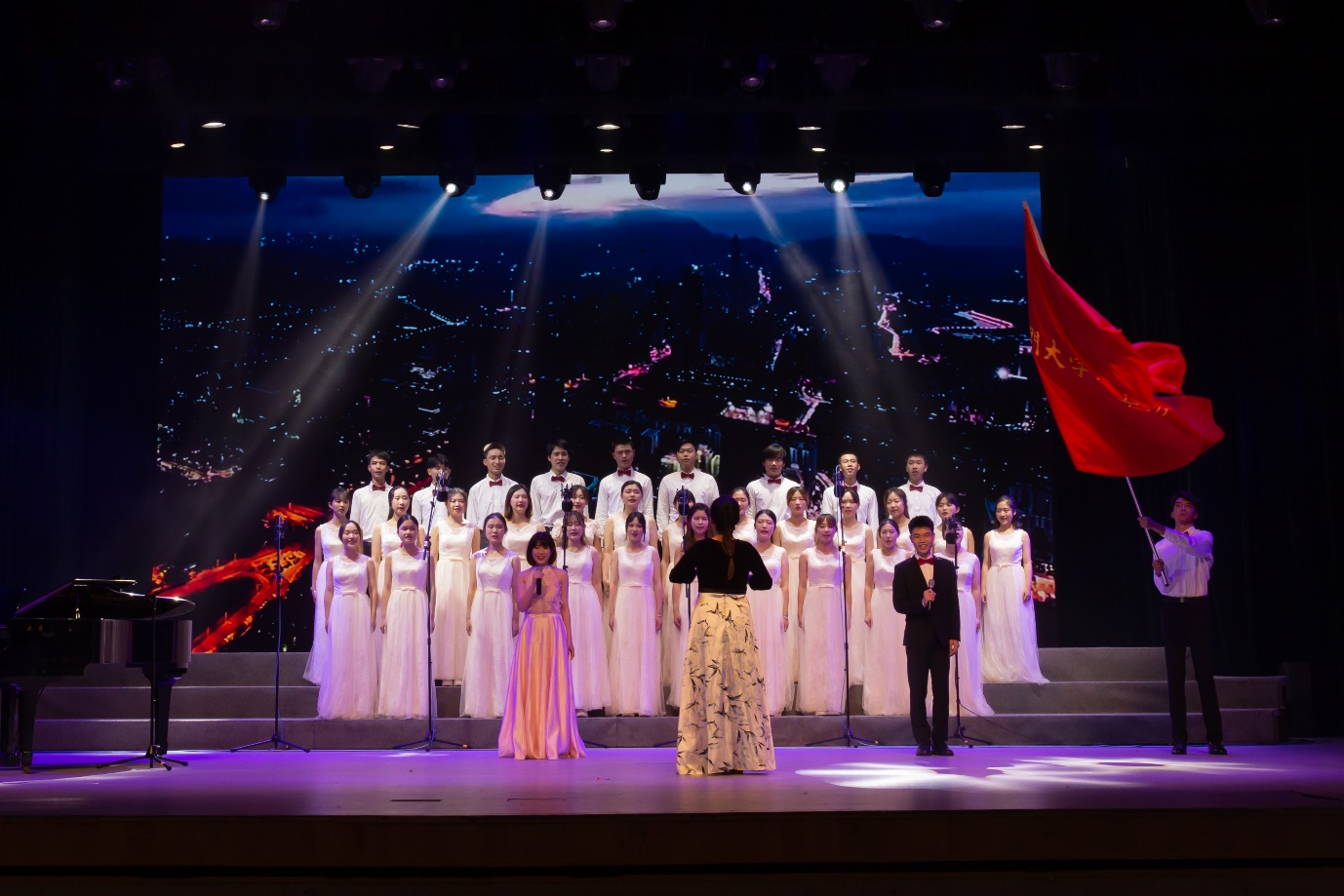 5月19日晚,“青春心向党,建功新时代” 厦门大学第七届校园合唱节汇演在建南大会堂举行。外文学院合唱团先以一段深情的朗诵赞扬了烽火岁月里先辈们不屈不挠、玉汝于成的奋斗精神,激励当代青年以更加昂扬的精神面貌迎接新时代的到来。之后,外文学院合唱团为在场师生们演绎了歌曲《天耀中华》。外文学子用深情的歌声诉说着对祖国的美好祝福,展现出他们心怀祖国、与党同心的情怀和为中华民族伟大复兴做出贡献的坚定信心。