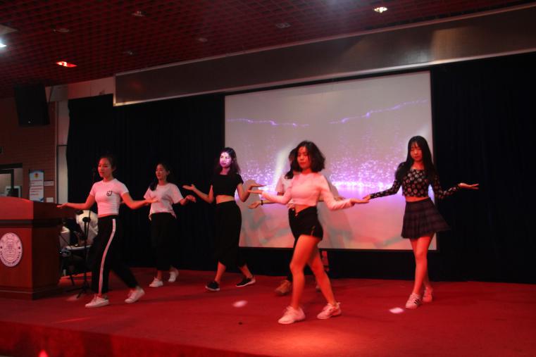 精彩的节目仍在继续。接着,林萧、张思怡、陈倩、王琪琪、张译亓和张佳睿带来了舞蹈《latata》,舞姿动人,俏皮活泼,时而可爱,时而性感。丁钰倩、苗晋宁、舒畅和陈柏旭、唐婷婷、叶毓晖和刘丹分别表演出演了配音节目《东北一家猪》和》,其中的东北话别有韵味,给大家展现了搞笑版的《小猪佩奇》;唐婷婷、叶毓晖和刘丹的配音节目是《疯狂动物城》。,虽然用了两个节目都使用了各自的家乡话,幽默风趣,博得了大家的阵阵笑声,整体效果却很