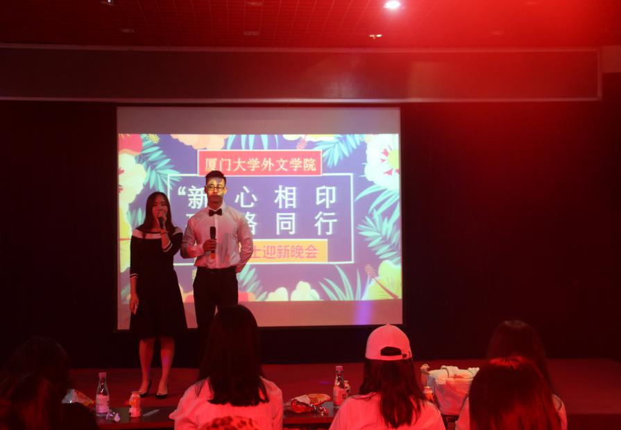 10月21日19点45分,外文学院2018级研究生“‘新’心相印,研路同行”迎新晚会在自钦楼二楼多功能厅拉开帷幕。学院党委副书记沈丽秀老师,团委书记、研究生辅导员乐无恙老师、研究生教学秘书邹柳新老师、研究生团总支书记王沁欣心、研究生会主席肖宁双,以及全体18级研究生研究生参加了本次晚会。晚会由陆佳媛、傅辰鋆两位同学共同主持。