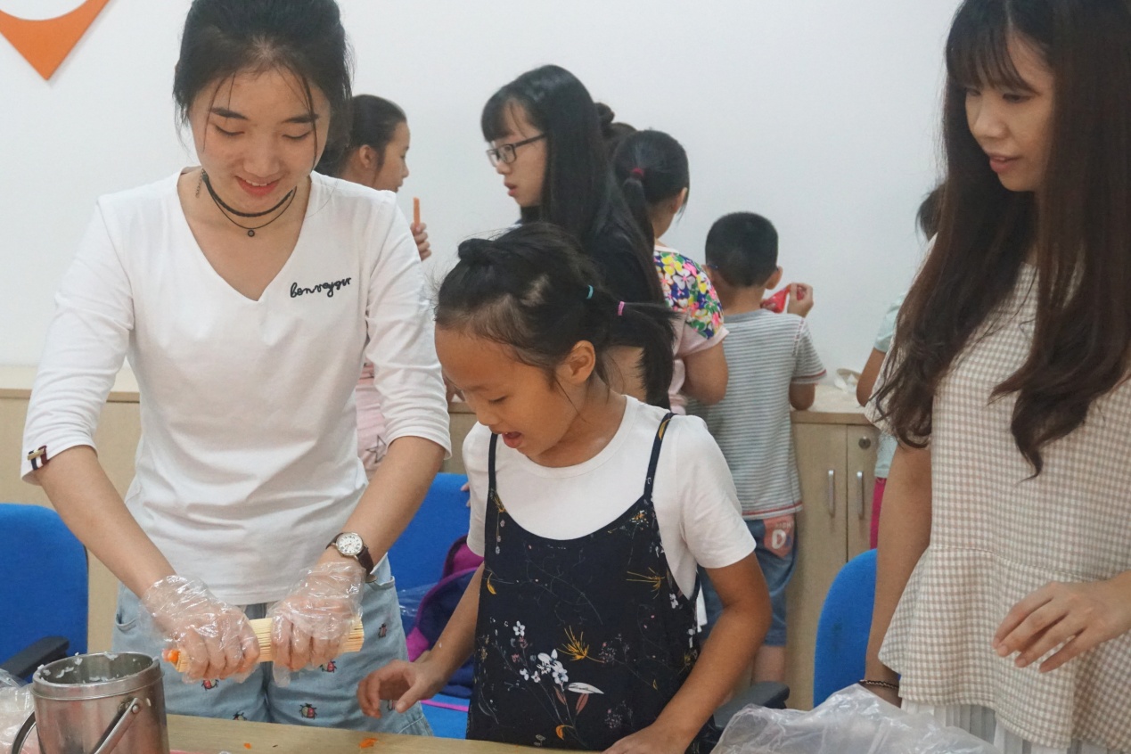实践队员帮助社区学员制作金砖国家特色美食