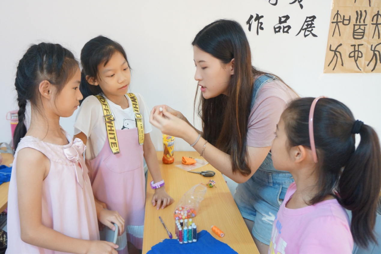 实践队员带领学员们进行金砖国家特色服饰DIY