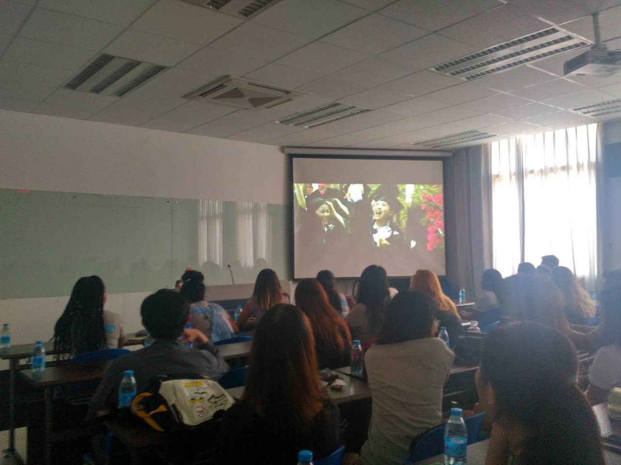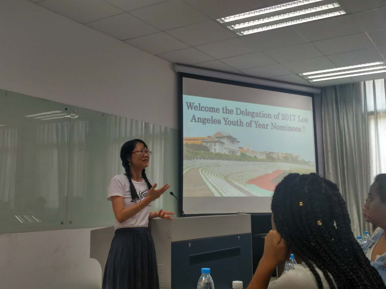 首先,来自洛杉矶的老师和同学一起观看了厦门大学的介绍影片,影片图文并茂地介绍了厦门大学的历史和发展,同学和老师们都欣赏得十分认真。接下来,来自洛杉矶的两位学生代表上台向大家介绍了自己家乡洛杉矶的风土人情,其中着重从气候、城市环境、文化氛围、流行元素、对青少年发展的影响、生态环境等方面介绍了洛杉矶这座魅力之城、理想之都,幽默、有趣又详细的介绍让在场的中国学生们心生向往,也博得了大家一阵阵的掌声和笑声。