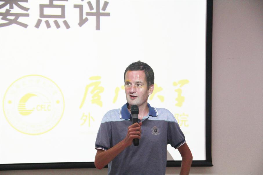 随后,本次邀请赛评委、外文学院英语系外教Michael和Nicholas先后对选手表现进行点评。Michael表示,本次邀请赛充分展现了选手们的英语写作能力,汇聚了英语学子的文学才华与感悟,并鼓励大家继续精进自己在英语语言文学方面的专业能力。Nicholas感言道,本次邀请赛为选手们相互学习切磋提供了宝贵的机会和交流平台,他非常欣赏诵读比赛的选手们敢于站在舞台上进行朗诵的勇气,比赛的紧张心情虽难以避免,但也是选手们在台上大胆突破自己的动力。