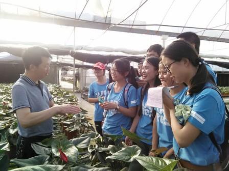 7月22日下午,厦门大学外文学院“永福镇台湾创业园”实践队参观了“盛唐花卉”公司,并对创始人林绍强进行了专访。林先生从红掌的引进、培育、销售谈到整个花卉行业的发展之路,队员们受益颇多。