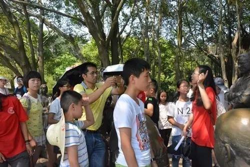 小朋友们在陈嘉庚先生铜像前合影留念