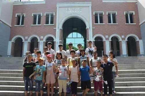 小朋友们在图书馆前合影