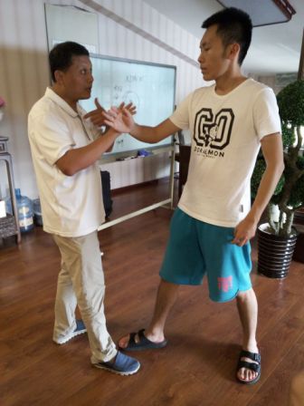 队员在“北京太极山庄文化研究会”请教山庄前任主席太极推手的关隘