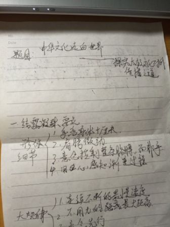 队员学习“太极五式”基本功的笔记