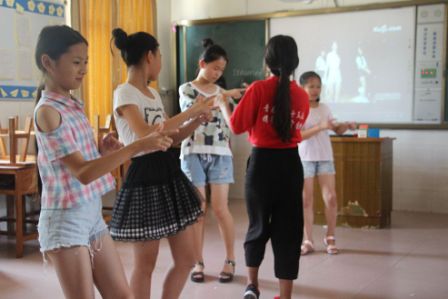 两堂课结束之后,小朋友们按照计划找到相应的支教老师进行联欢会节目的排练。从合唱到舞蹈,从诗朗诵到话剧,不论是小朋友们还是支教老师,大家都十分认真,一字一句,一个音一个动作,都认真细致地做到最好。看到在各个教室排练的小朋友们脸上绽开的天真笑容,真觉得我们实践队的队员们与这里的小朋友们相处得十分融洽。节目排练渐入佳境,期待在竹坝的山容树色间,听到小朋友们引吭高歌,看到小朋友们曳衣拂袖、款款而舞。