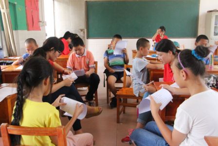 在隔壁教室,上的是美国大哥哥乔治的英语口语课,课堂一如既往地活跃。在乔治老师的鼓励下,六年级和初中的小朋友们都纷纷站起来用英语介绍自己。即使只是简单的三两句话,道出的也是小朋友们与外国友人成功沟通时的喜悦。课后,小朋友们的热情丝毫没有退却,都围着乔治老师询问一些中国词语的英语说法。看来小朋友们都体会到了驰骋学海的快乐,知识的海洋真是让人难以探寻净尽。