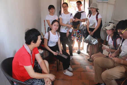 管理员蔡阿姨向队员娓娓讲述纪念馆的历史与现状以及周围环境的变迁,并坦言像纪念馆一样的“燕尾脊”样式的建筑原来有很多,但近几年渐渐消失,都变成了一排排的高层住宅。说到这里,阿姨眼中流露出些许遗憾的神情。面对传统文化建筑逐渐消失,队员们心情也沉重起来。