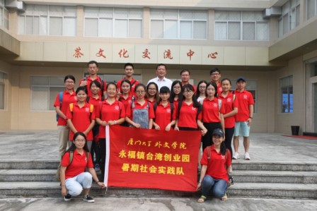 7月25日,厦门大学外文学院“永福镇台湾创业园”暑期社会实践队先后走访了当地两家著名台湾茶企????台品茶业有限公司和鸿鼎茶业有限公司,并分别对其董事长谢东庆和李志鸿进行了访谈,两位“台一代”老总的创业创新分享让队员们深受启发。