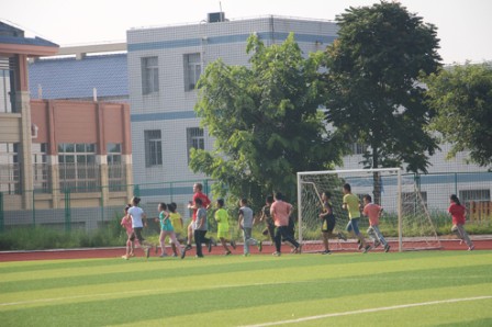 乔治老师带领孩子们慢跑