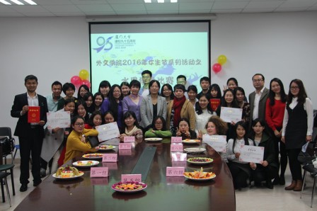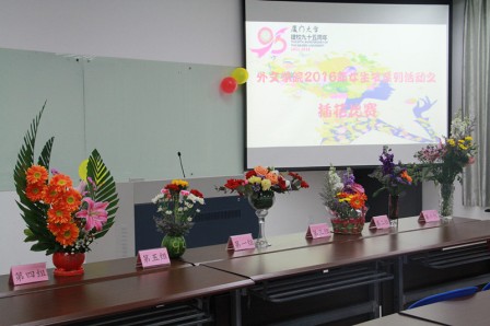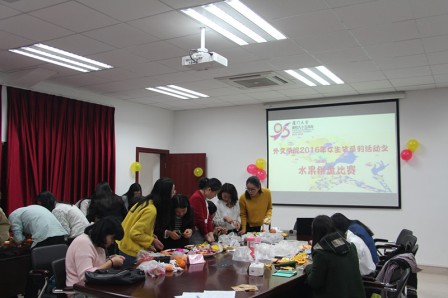 伴着春日里和煦的微风,外文学院的女生们又迎来一年一度的女生节。为了庆祝此次节日,外文学院研究生团总支、研究生会于3月7日晚在南光三举办外文研究生女生节经典活动――水果拼盘与插花大赛。本届比赛作品以厦门大学为主题,为即将到来的厦大95周年华诞献上祝福。外文学院党委书记陈志伟,党委副书记郑新风,副院长陈端端、徐琪,英语系副主任辛志英、林斌,院团委书记乐无恙及辅导员张闻博出席本次活动并担任比赛评委。