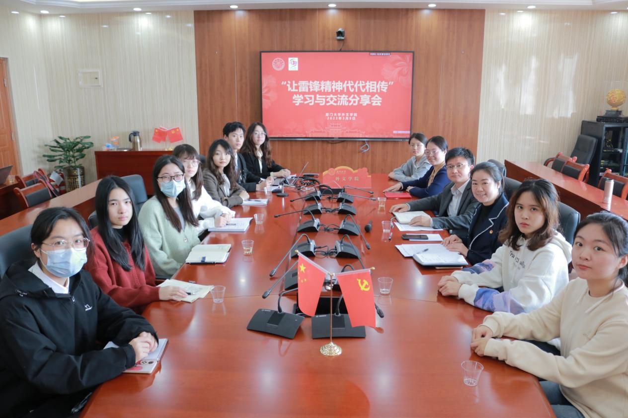 今年是毛泽东等老一辈革命家为雷锋同志题词60周年,为深入学习雷锋精神,引导外文学子更好地传承和弘扬雷锋精神,3月9日,厦门大学外文学院、华体网、浙江大学外国语学院联合举办新时代外语学子传承雷锋精神交流分享会,交流志愿服务工作亮点与特色,分享参加志愿服务经验与体会,互相学习借鉴好经验好做法,努力提升志愿服务工作质量,进一步擦亮志愿服务品牌底色。学院党委副书记张胜强、团委书记吴珊珊、团委副书记戴晓燕及学生代表参加了交流分享会。
