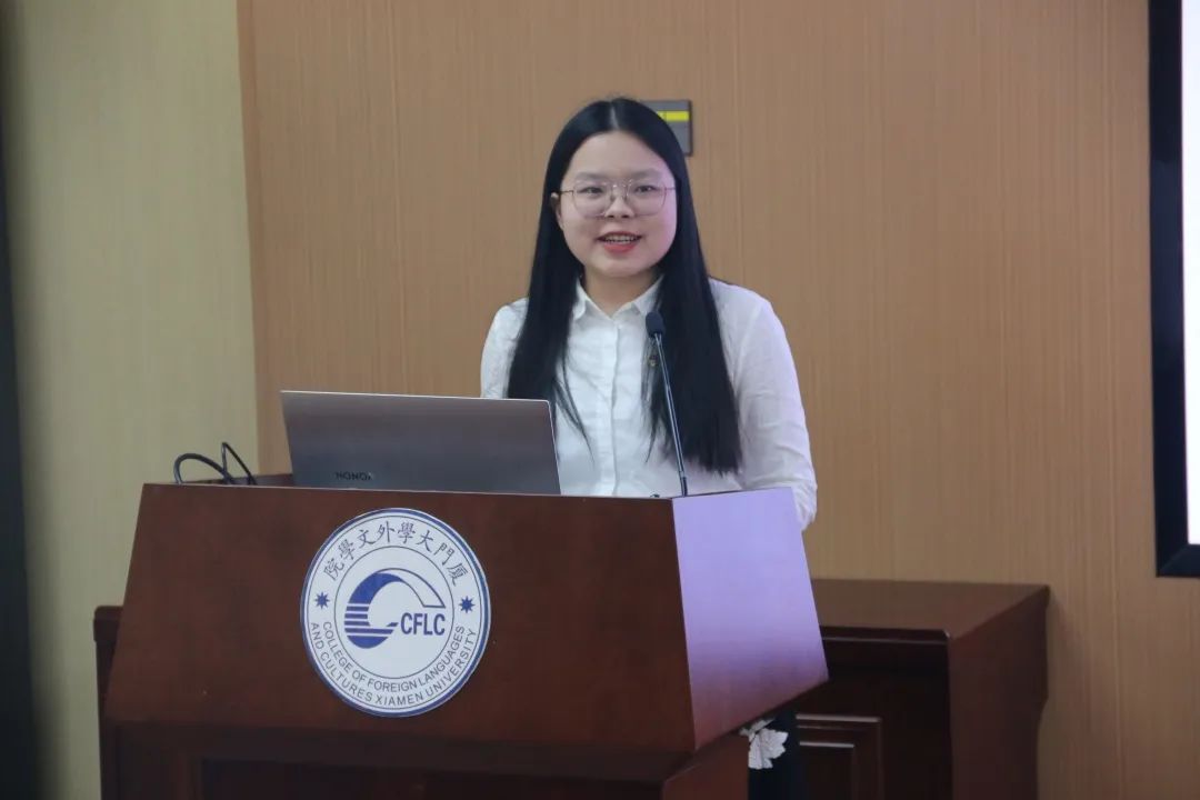 厦门大学第二期“职业体验·大学生社区挂职计划”参与者王楠同学结合社区挂职经历,分享在社区的所见所闻所思所想,着重介绍“社区实践怎么做”。她指出,同学们可以借鉴社区开展主题教育的活动经验并结合学院的实际情况,举办更多符合同学需求、体现外文特色的活动,并期待更多同学能够加入大学生社区实践的队伍。