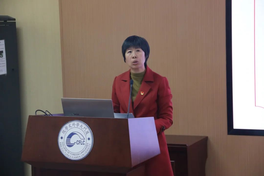 沈丽秀副书记为本次培训致辞。她指出,学院一直高度重视学生骨干的培养工作,在过去的两个月内,学院团员青年深入开展学习贯彻习近平新时代中国特色社会主义思想主题教育,取得了阶段性的成效,今后要从三个方面继续加强学习和实践:一是坚持学原文悟原理,加强理论学习;二是树立自觉服务意识,倾听青年呼声;三是投身各类社会实践,锤炼过硬本领,在思想上主动发挥“头雁效应”,在实践中汇聚青春力量,努力回答好“强国建设,厦大何为?外文何为?”的时代课题。