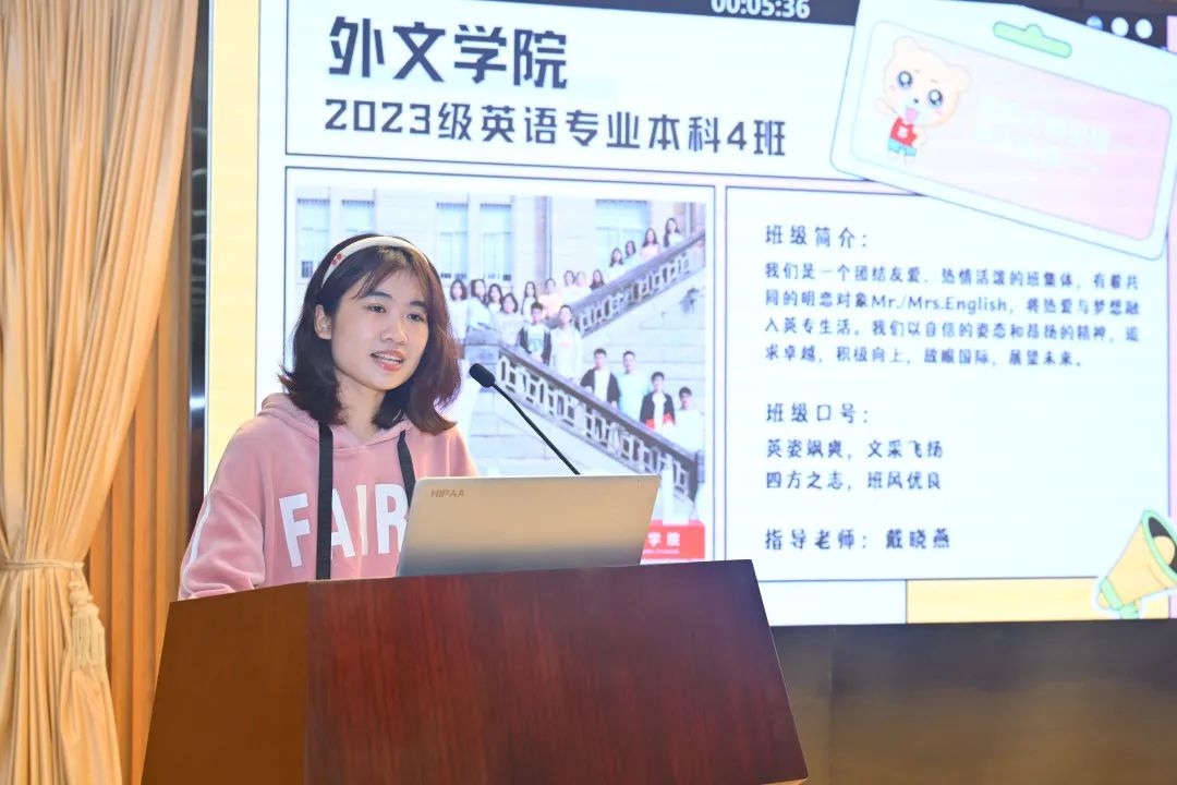 为深入学习贯彻习近平新时代中国特色社会主义思想,健全网络育人综合治理体系,多渠道、全方面展示班级风采,学校于2023年11月-12月举办2023年“网络文明班级”评选活动。学院2023级全体本科班级积极参与,认真备赛,开展学习团建等活动,团结一致,凝聚力量。决赛现场,入围班级以演讲、表演等多种形式全方位展示班级特色风采和文化,体现了外文学子的蓬勃朝气与学院班风建设成果。