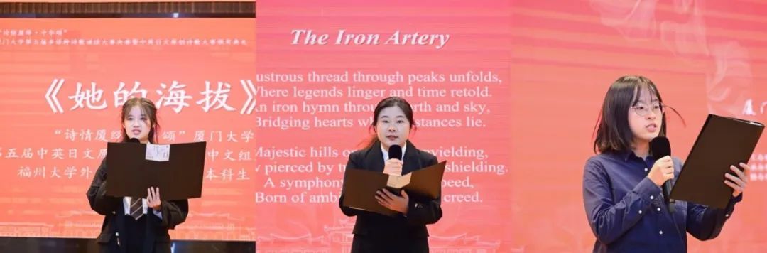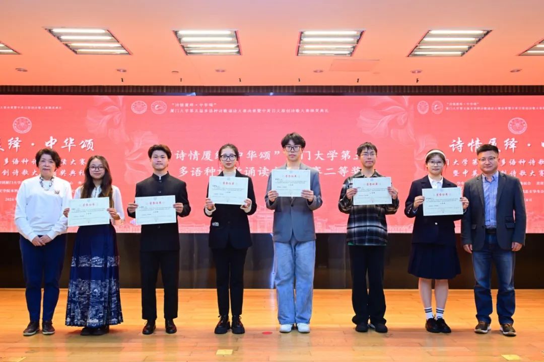 在热烈的气氛中,“诗情厦绎·中华颂”厦门大学第五届多语种诵读大赛决赛暨中英日文原创诗歌大赛圆满落幕。此次比赛是一场文字与声音的盛宴,不仅传递了中华文化之美,也展现了青年学子对经典的深情演绎,期待今后有更多同学踊跃加入这场文化盛会,共同书写属于当代青年的诗意篇章!
