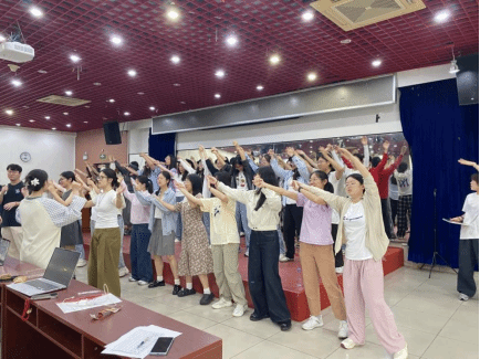 合唱团邀请了艺术学院的同学悉心指导,合唱团及舞蹈队的同学们经过半个多月的排练,外文学院团总支文娱部工作人员认真细致做好排练安排和后勤保障工作,用有限的时间释放无限的热情,每个人都尽自己所能演绎着铿锵激越的歌曲。“中国,祝福你,你永远在我心里”的深情告白,是集体情感的澎湃宣泄,向大家展示着昂扬向上的青春风貌。