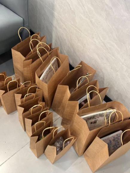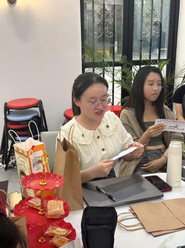盲盒互换环节中,同学们携带小礼品至现场,手写祝福卡,一并放入盲盒袋,贴上解压关键词,随机地与他人交换盲盒。暖心的刮刮祝福卡、惊喜的盲盒礼物带给了同学们治愈的温度,在欢声笑语中,释放压力,轻松一夏!