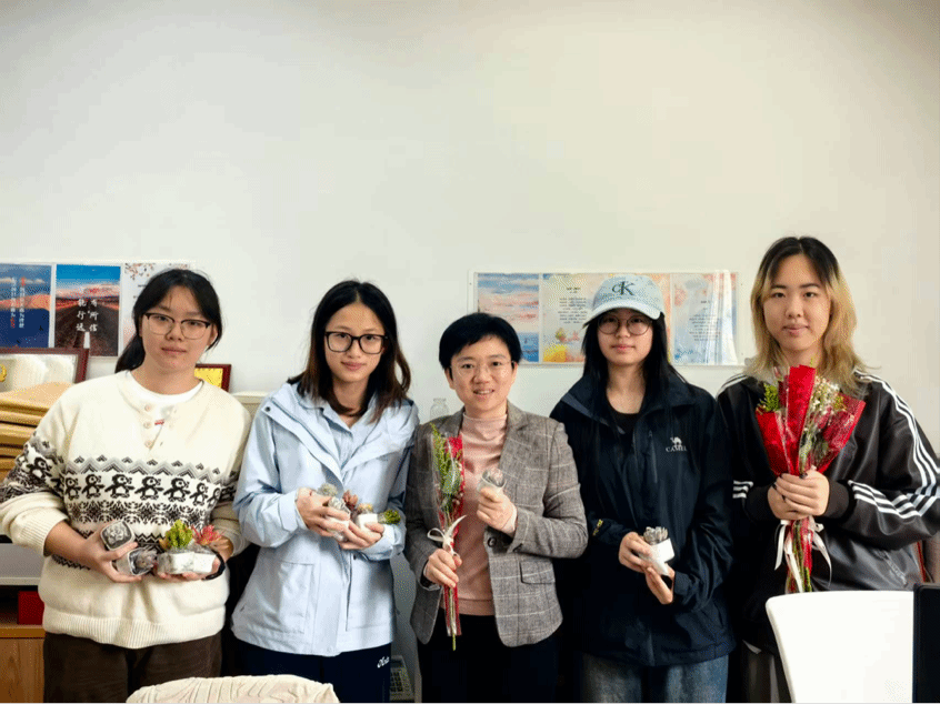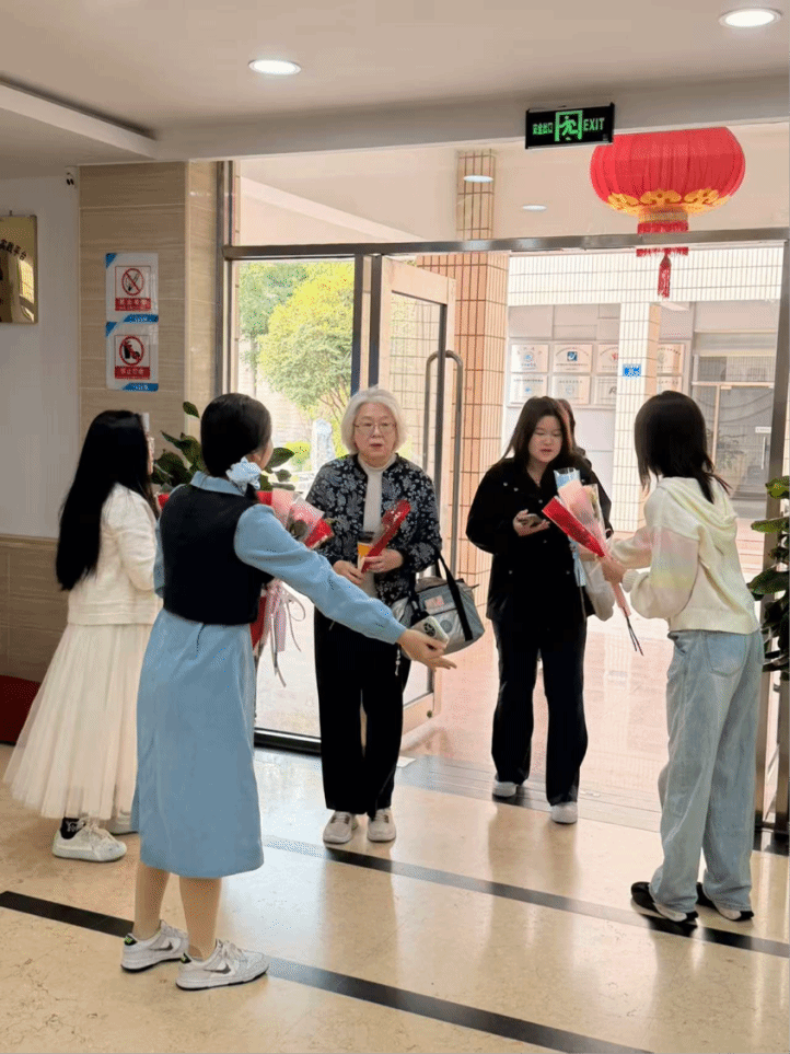 随着老师与同学们的陆续到来,这份初春的惊喜被逐一送到每一位女教师和女同学的手中 。“老师,提前祝您妇女节快乐!这束花送给您。”当精美的花束与多肉盆栽递出时老师们的脸上露出惊喜的笑容。有老师将多肉摆在办公桌最显眼的位置,有老师轻嗅花香,连声道谢。教室里,收到花束的同学们也纷纷拍影留念,欢声笑语久久回荡在走廊与楼道之间 。