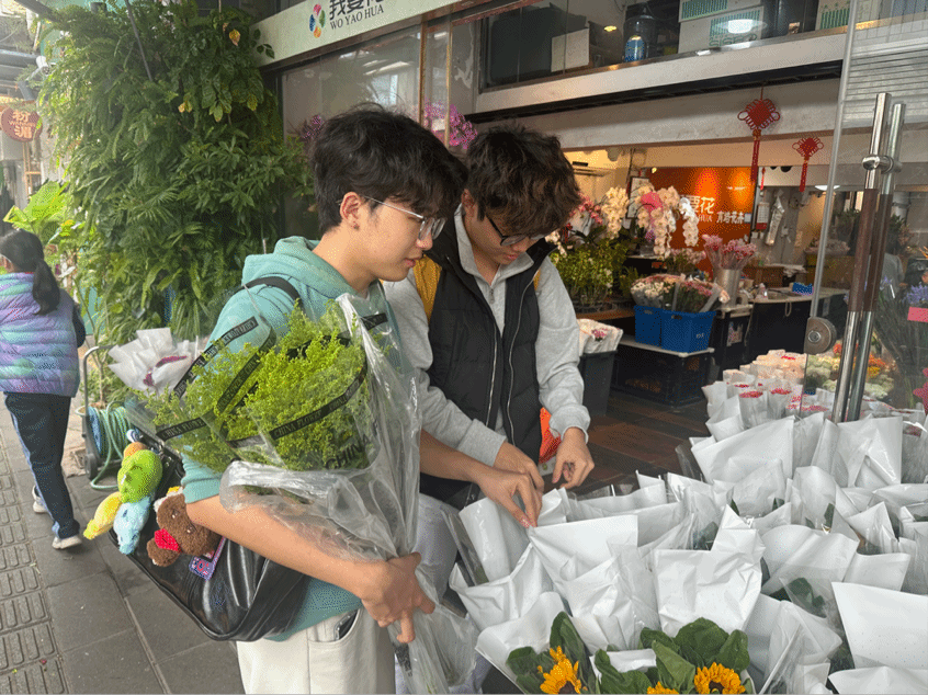 3月5日中午,文娱部的采购小分队利用午休时间出发前往花市。献给师长的是生意盎然的多肉植物,以及由娇艳玫瑰与满天星交织而成的花束,寓意着春风化雨的师恩与关护 ;赠予同学的则是色彩明丽的各色玫瑰,寄托着对女性绚丽多元、自由生长的不息祝愿 。除了鲜花,大家还备齐了包装纸、丝带和剪刀钳子,为后续的工作做好充分准备。