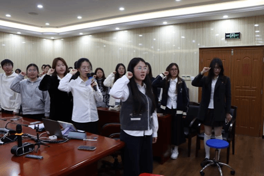 批评与自我批评环节中,支部书记带头自查,反思活动策划缺创新、沟通深度不足等问题,团员依次发言,从理论学习主动性不足、先锋模范作用发挥不充分、时间统筹能力薄弱等方面深刻剖析自身问题,团员互评直截了当,既指出他人短板,也提出改进建议。最后,2024级本科法语一班团支部全体同学以及到会团支部书记一起重温入团誓词,以铿锵誓言坚定使命担当。