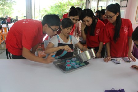 724日下午厦门大学外文学院研究生“囊萤之光”暑期实践队在竹坝学校副校长吴老师的带领下走进芳都杨桃园,感受田园风情,体验手工皂制作。从园主的介绍中,我们了解到他们十五年前从台湾来到厦门竹坝建园,不仅将台湾的手工皂制作配方带到厦门竹坝,而且利用当地土壤的特性,因地制宜,开辟了一片杨桃园林。一进园林,其古朴俊逸的布置让我们眼前一亮,处处透露着雅致和风韵。不过由于杨桃的结果时间在10月到次年4月,所以今天我们无缘摘果,但有幸体验手工皂的制作,我们就在一片兴奋和好奇中开始了今天的主题――台湾手工皂制作。