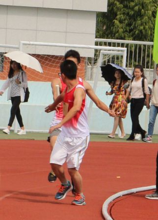 上午10时45分,观众们迎来了激动人心的研究生男子组400米决赛。外文学院2015级硕士生许益海和2016级硕士生徐向前代表学院出战。赛前,两位运动员在候场区做俯卧撑,积极热身,对即将到来的比赛成竹在胸。起跑线上,两位运动员做出专业起跑姿势,只等指令员一声令响,飞一般地冲向前方。400米是对运动员速度和体力的双重考验,前半圈,两位运动员在保持不掉队的前提下积蓄体力,后半圈奋起直追,在小组赛中赛出了风采。