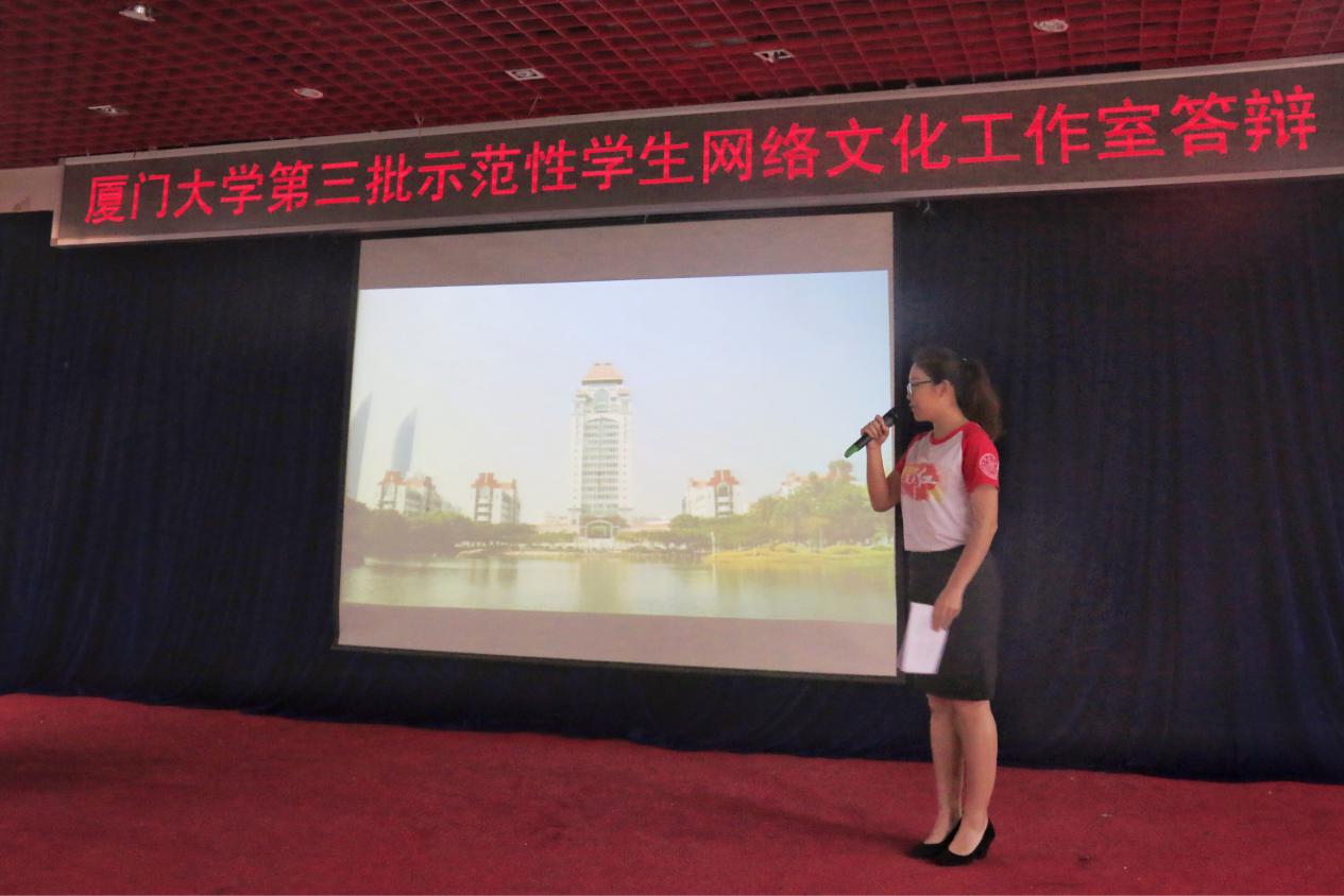 6月1日下午,厦门大学第三批“示范性网络文化工作室”评选在自钦楼多功能厅举行。外文学院“吓大红爱厦大”网络文化工作室(以下简称“吓大红爱厦大”)经自主申报、学院推荐、成果展示和答辩等环节考核,获评厦门大学第三批“示范性网络文化工作室”(全校仅5个)。