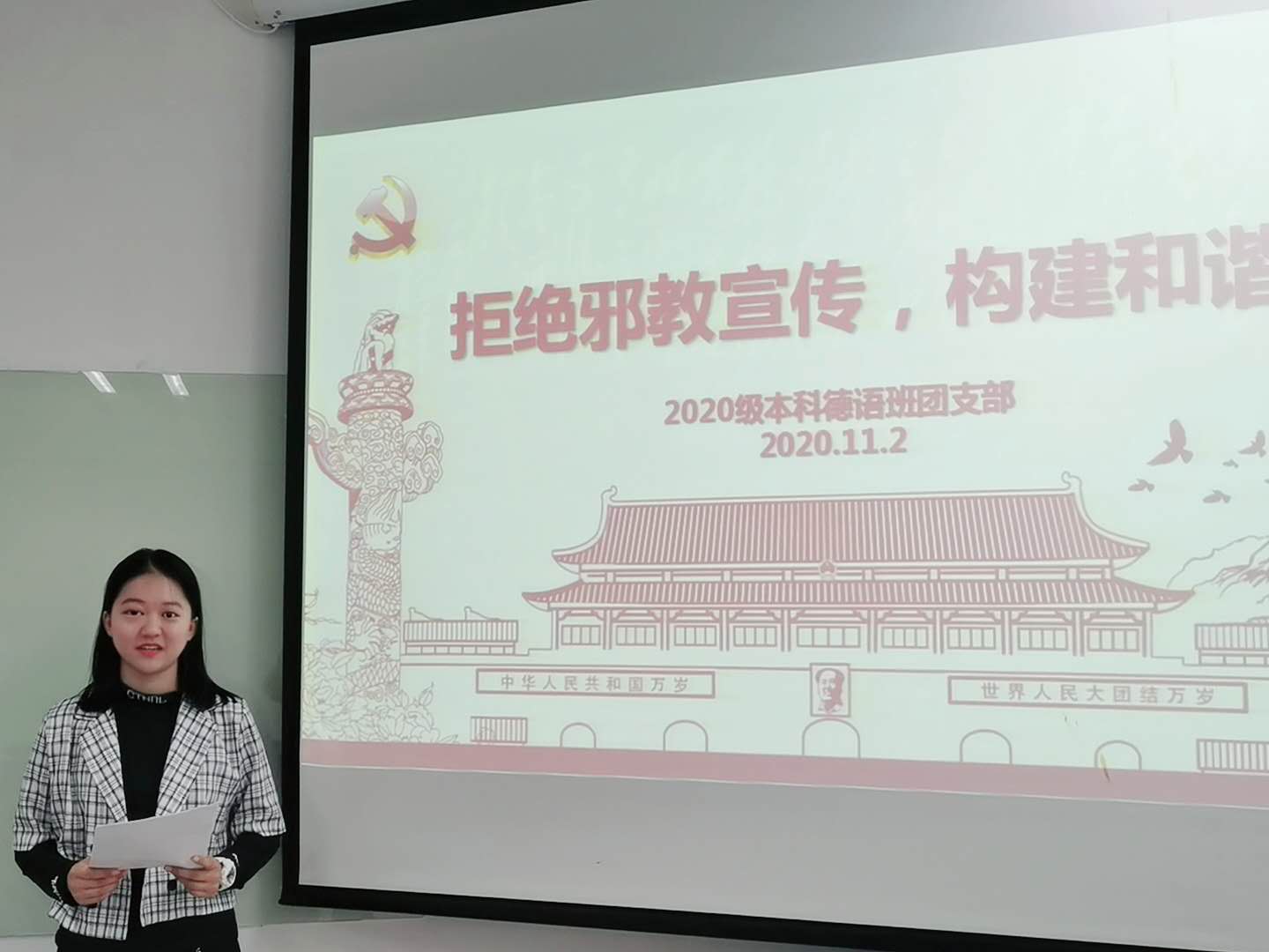 外文学院开展“拒绝邪教宣传,构建和谐社会”政治理论学习暨主题团课