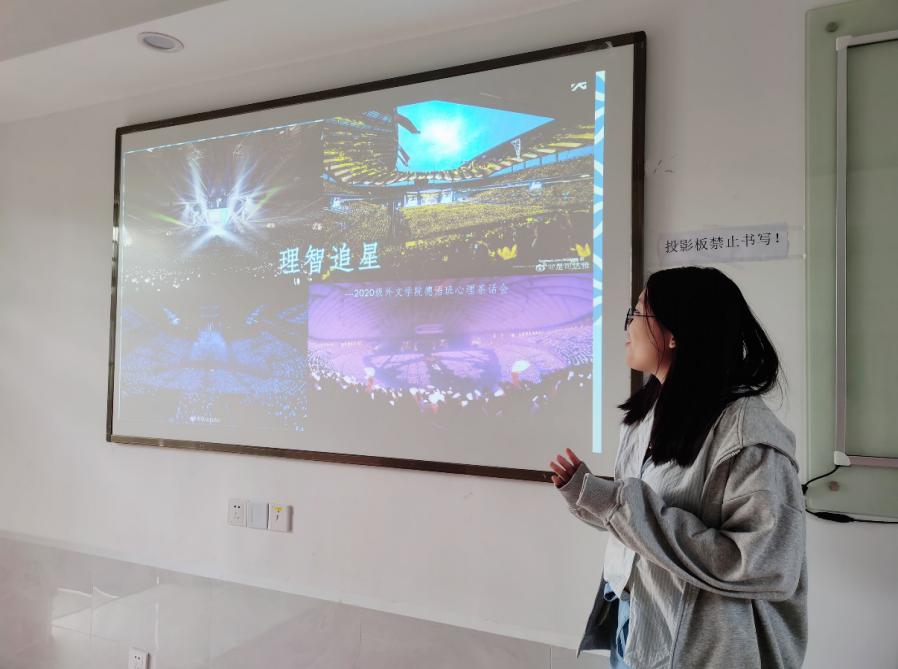 德语班心理委员徐晨在介绍本次心理沙龙活动