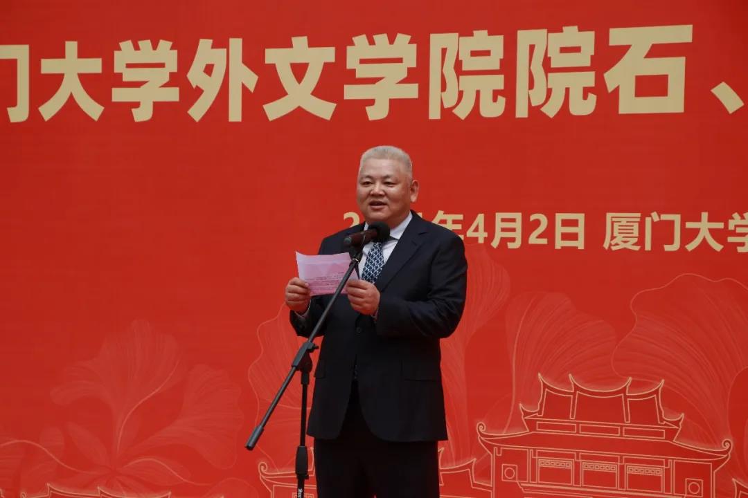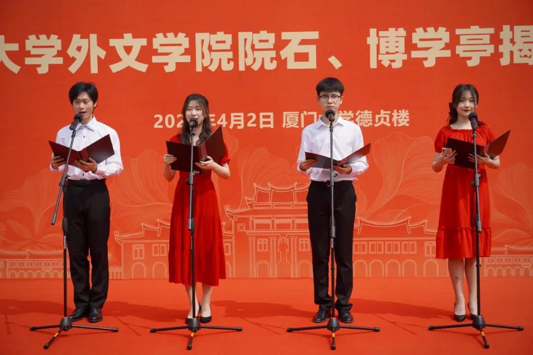 鹭江深且长,南强绽芳华。4月2日上午,厦门大学外文学院院石、博学亭揭幕仪式在德贞楼前隆重举行。厦门大学校友总会副理事长詹心丽,校资产处副处长崔庆炜,校基层党建工作联络员黄定基,外文学院党委书记陈志伟、院长陈菁、原院长杨信彰,厦门大学外文学院全球院友会会长、德屹资本董事长、77级院友朱德贞,84级、85级返校院友,学院党政领导及在校生代表出席了仪式,共襄盛举。