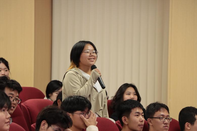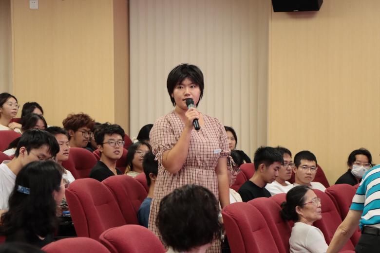 交流互动环节,同学们积极提问,锦绣学姐耐心解答,给予同学们更多的启发。面对人生百态,学姐活在自己的时区,坚持自己心中的那份理想与纯真,在那条人迹罕至的小路,一步一个脚印走下去。最后,她对同学们表达了热切的期望:在今后的人生中,努力去实现自我的人生价值。