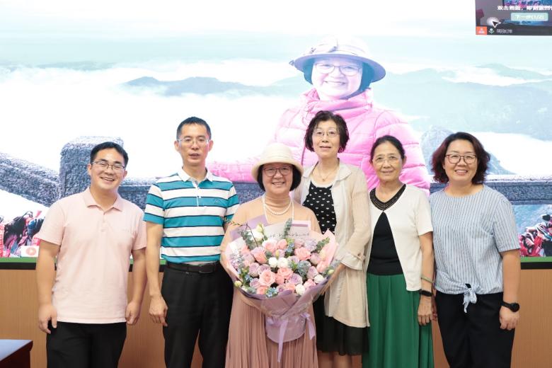 沙龙在热烈的掌声中落下帷幕,副院长戴鸿斌向锦绣学姐赠送纪念品,感谢其对母院工作的大力支持。现在,70岁的锦绣学姐依然热爱生活,自学PS,剪辑视频,推送排版,运营公众号;和登山搭子在黄山顶峰拍摄vlog。在沙龙结束时,她还乐呵呵地喊着拍照口令:五六,七——。面对人生的磨难,她依旧从容坚定地微笑着。“天空没有留下翅膀的痕迹,但我已经飞过”,这就是锦绣学姐的纯真年代。