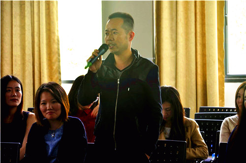 接着,由鲁京明老师作厦大法语系历史回顾与现状介绍。伴随着屏幕上一张张老照片,鲁老师将法语系的历史沿革娓娓道来,同时缅怀为法语系的发展殚精竭虑已经离开了我们的老前辈,感谢培养了一批又一批优秀法语人才的退休老教师冯寿农教授、黄贵成副教授、丁志强副教授、李燕玉副教授等,他们每一位都为厦大法语系做出了不可磨灭的贡献,每一位都是备受历届学生尊崇的良师益友。鲁老师还介绍了历任外教,在法语专业工作过的外教前后共有二十几位,其中她特别提到了Madame Fran?oise Pinot的故事。Pinot老师是一位对外法语教学专家,曾在厦大法语系任教5年,她对教学兢兢业业,将大半辈子都献给了中国的法语教学事业。最后她介绍了法语系的师资、科研、人才培养方面的情况,希望系友多为在校学生提供实习、就业、创新创业训练方面的支持,并希望系友们能够担任本科生的校外导师,探索校企合作培养人才的模式。