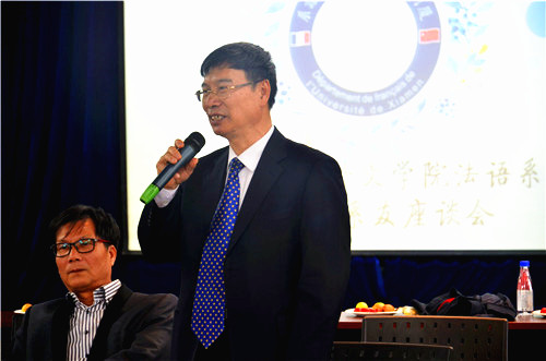 4月15日上午9时,外文学院法语系40周年系友座谈会于自钦楼二楼多功能厅举行。外文学院党委书记陈志伟老师、外文学院法语系师生以及来自五湖四海的七十余名法语系系友均出席了此次座谈会。