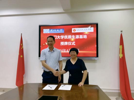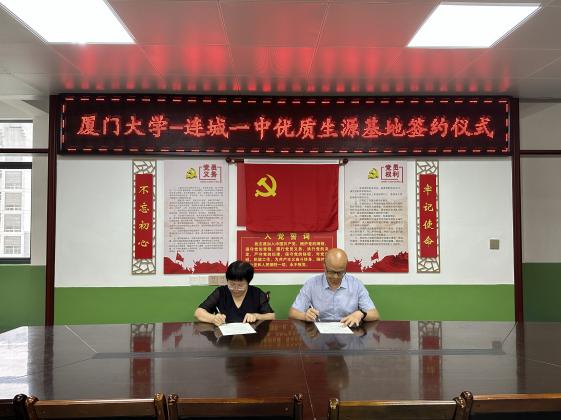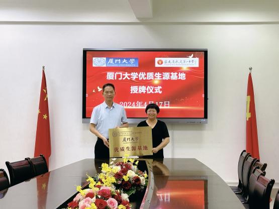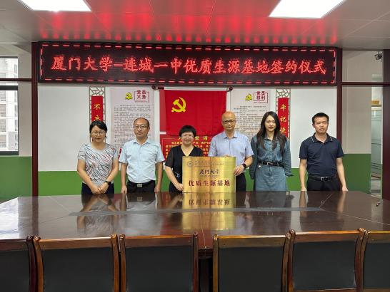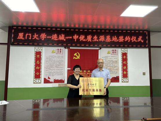 在连城一中,连城县教育局副局长兼连城一中党总支书记李钧、连城一中校长曹胤、党总支副书记杨德胜等出席活动。双方进行了亲切友好的交流,顺利举行了厦门大学“优质生源基地”授牌仪式。江桂英副院长表示,连城一中在为党育人、立德树人事业上起到了积极作用,为国家高等教育事业培养了一批优秀后备力量。