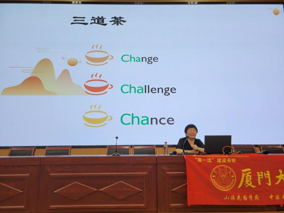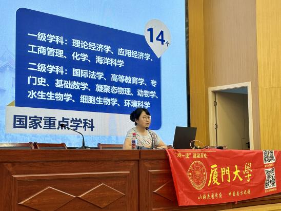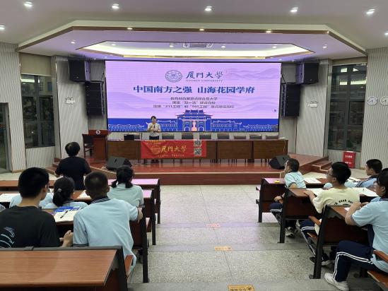 在充分调动现场同学们的求知欲后,李素英主任以“中国南方之强·山海花园学府”为题,简要介绍了厦门大学办学历史、厦门大学强基计划招考政策解读和强基计划培养特色等内容,极大地引发了两校同学对于厦门大学的兴趣,场面十分活跃。